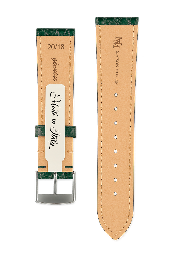 BRACELET EN CUIR DE VEAU MAT - EMBOSSAGE CROCODILE - VERT FAIT MAIN EN ITALIE