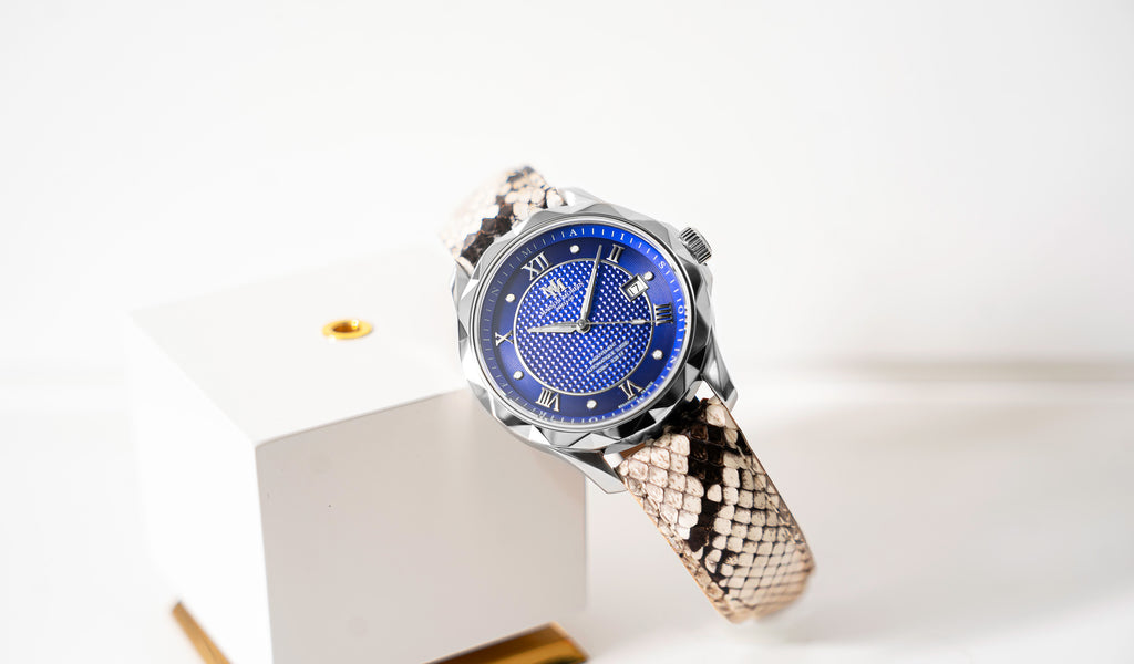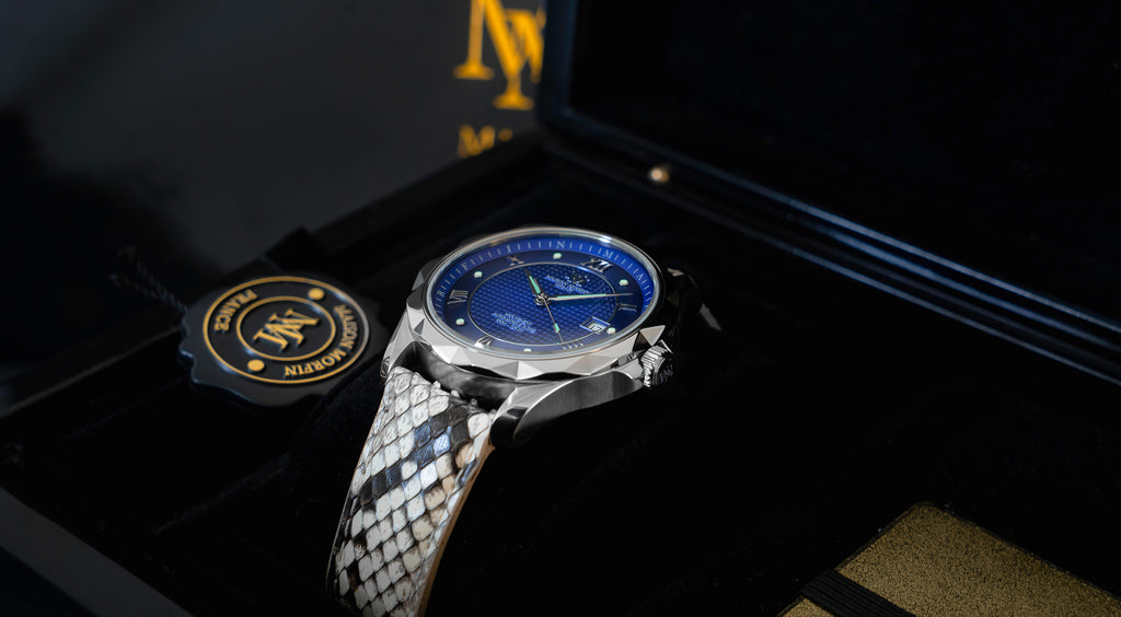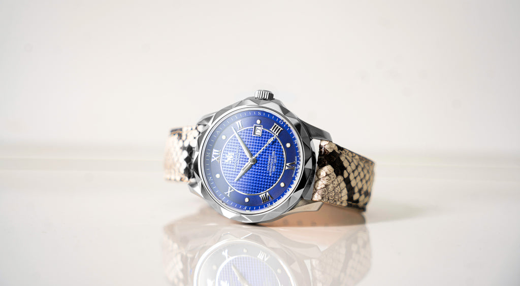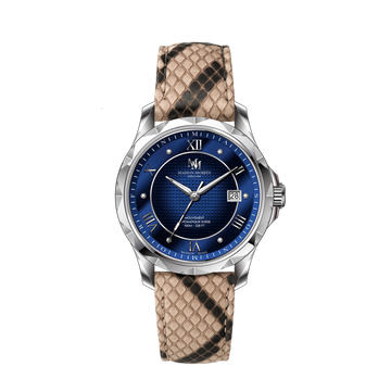MM24-06 ARGENTÉ - CADRAN BLEU LAPIS LAZULI - CUIR PYTHON