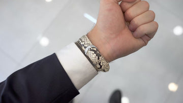 - Bracelet en cuir de python, made in Italy, cousu main. Tannage végétal hypoallergénique.