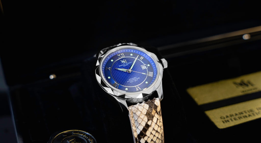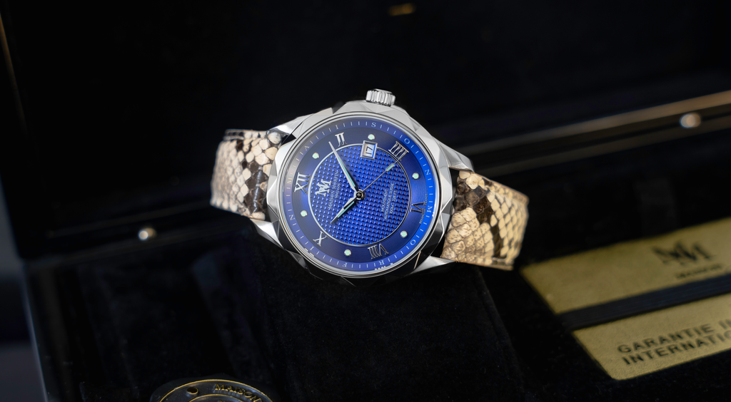 Le cuir utilisé pour le bracelet équipé sur cette MM24-06 est un cuir de python Made in Italy cousu main et tannés au végétal.