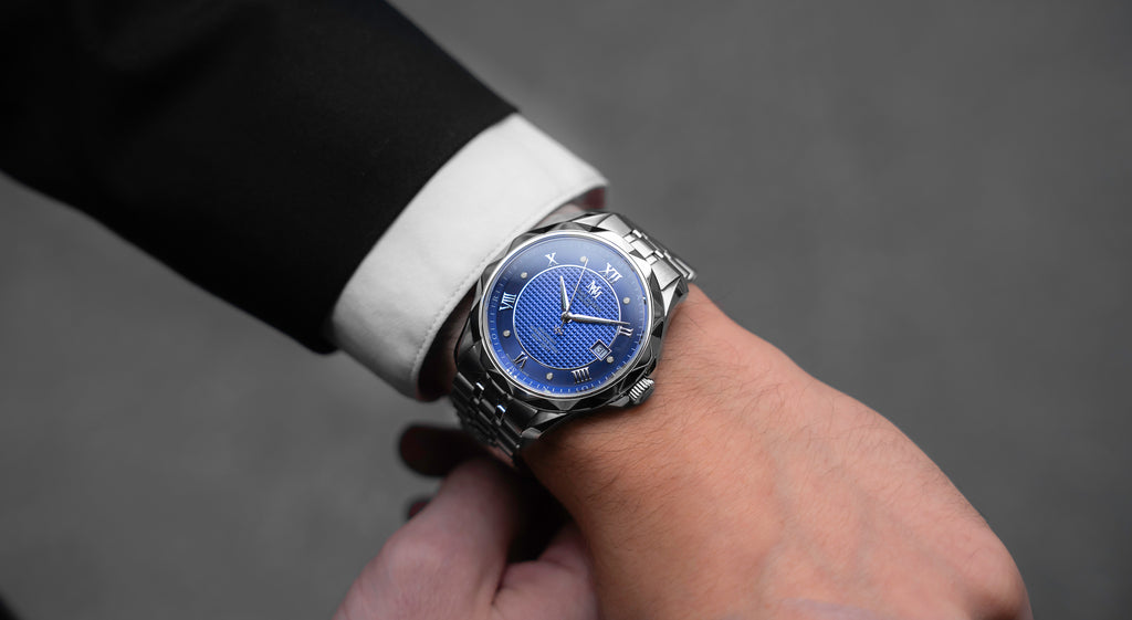 Pour le modèle MM24-06, nous utilisons un acier satiné pour le bracelet et le boîtier, mettant un point d'honneur à la réalisation et à la qualité de cette finition.