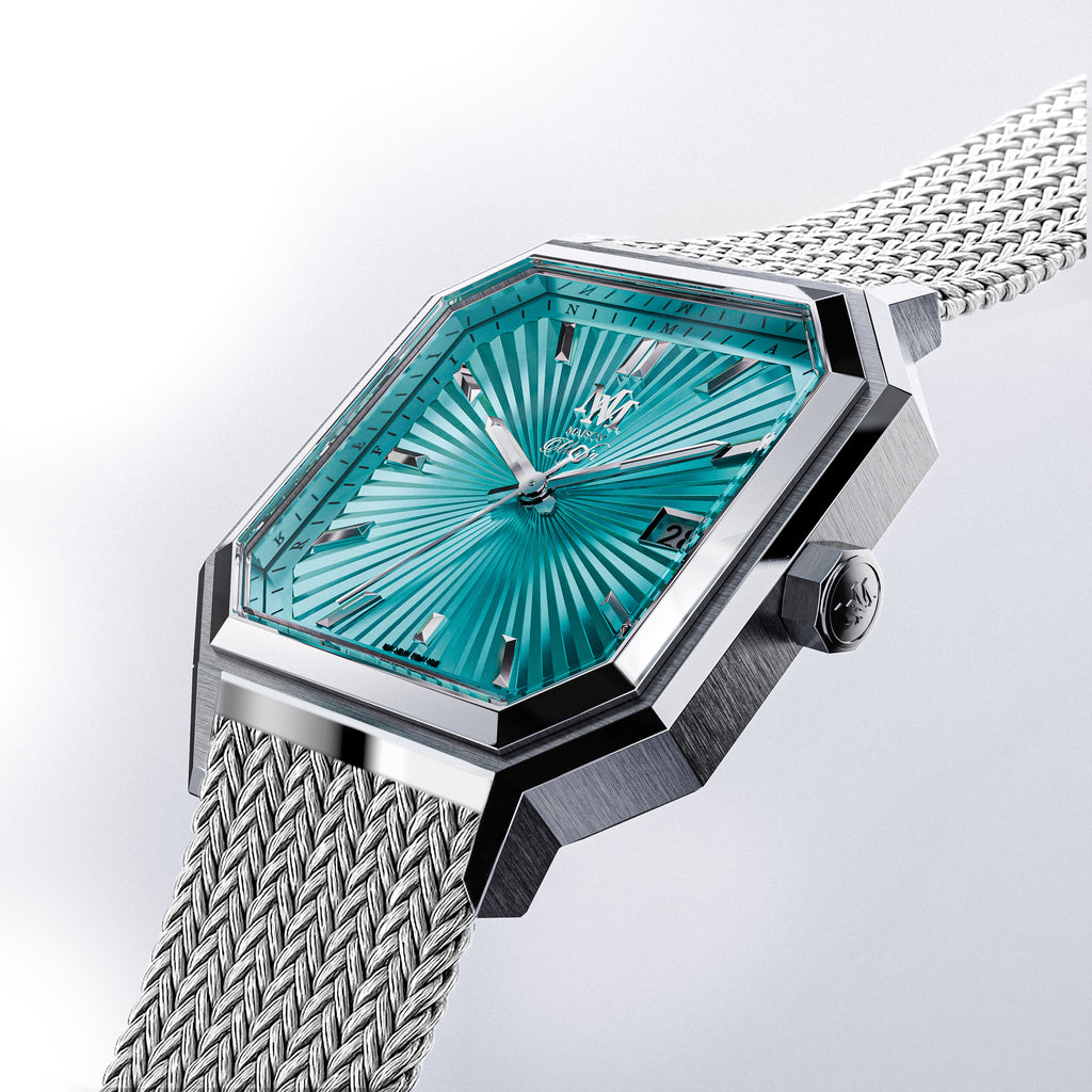 Chaque ligne de la MM25-08 a été pensée avec rigueur, jouant sur des angles francs et une architecture octogonale assumée. Le boîtier alterne finitions brossées et polies pour révéler chaque facette avec justesse. Un design précis, où chaque détail souligne le caractère sculptural de la pièce..