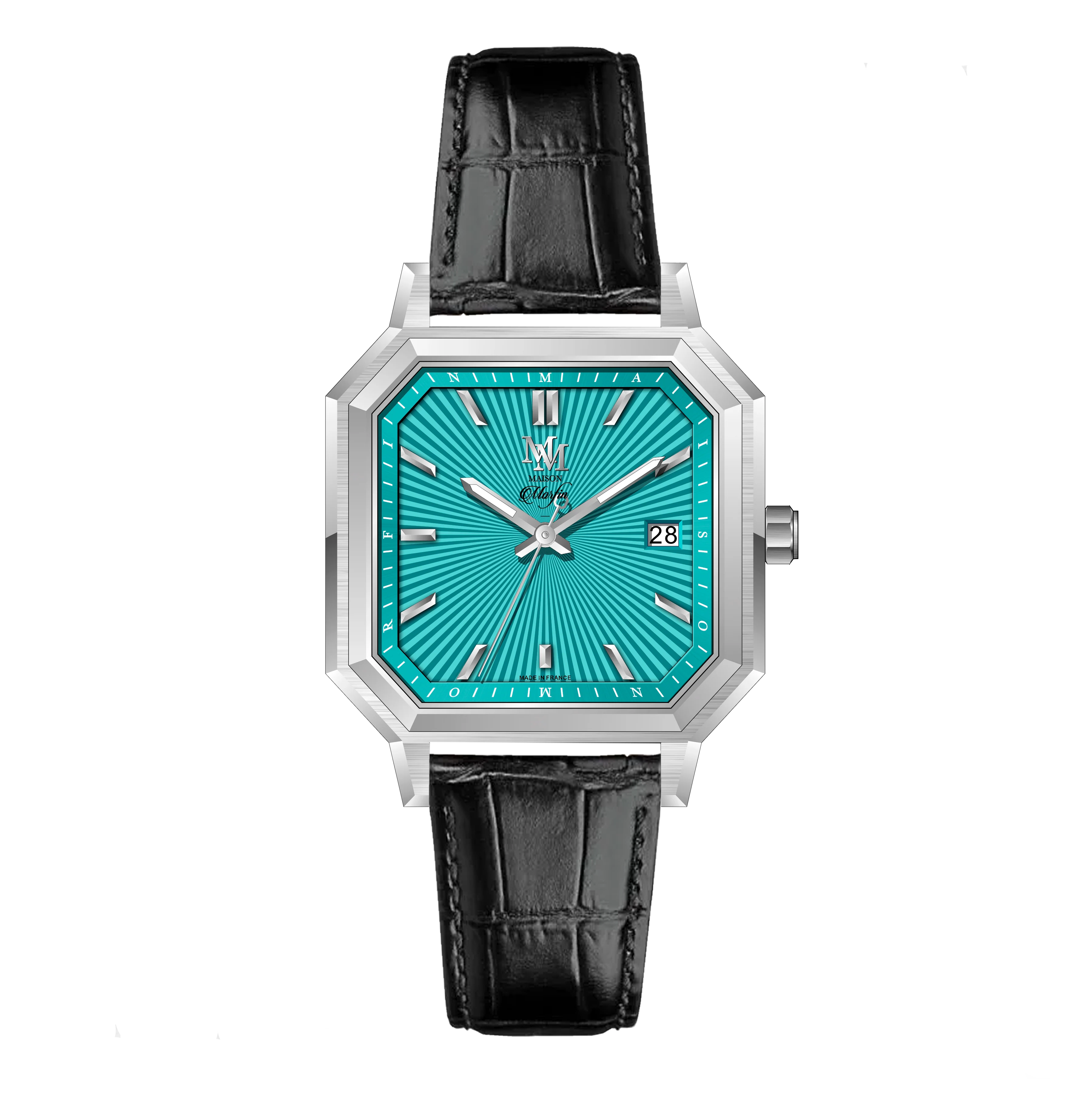 MONTRE AUTOMATIQUE MM25-08 - BLEU TURQUOISE CUIR VEAU NOIR