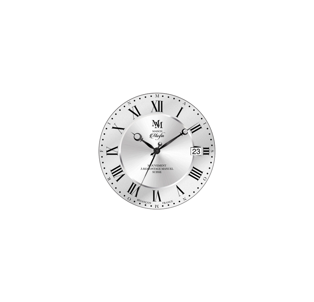 - Aiguilles des heures et des minutes de forme, plaquées noires.