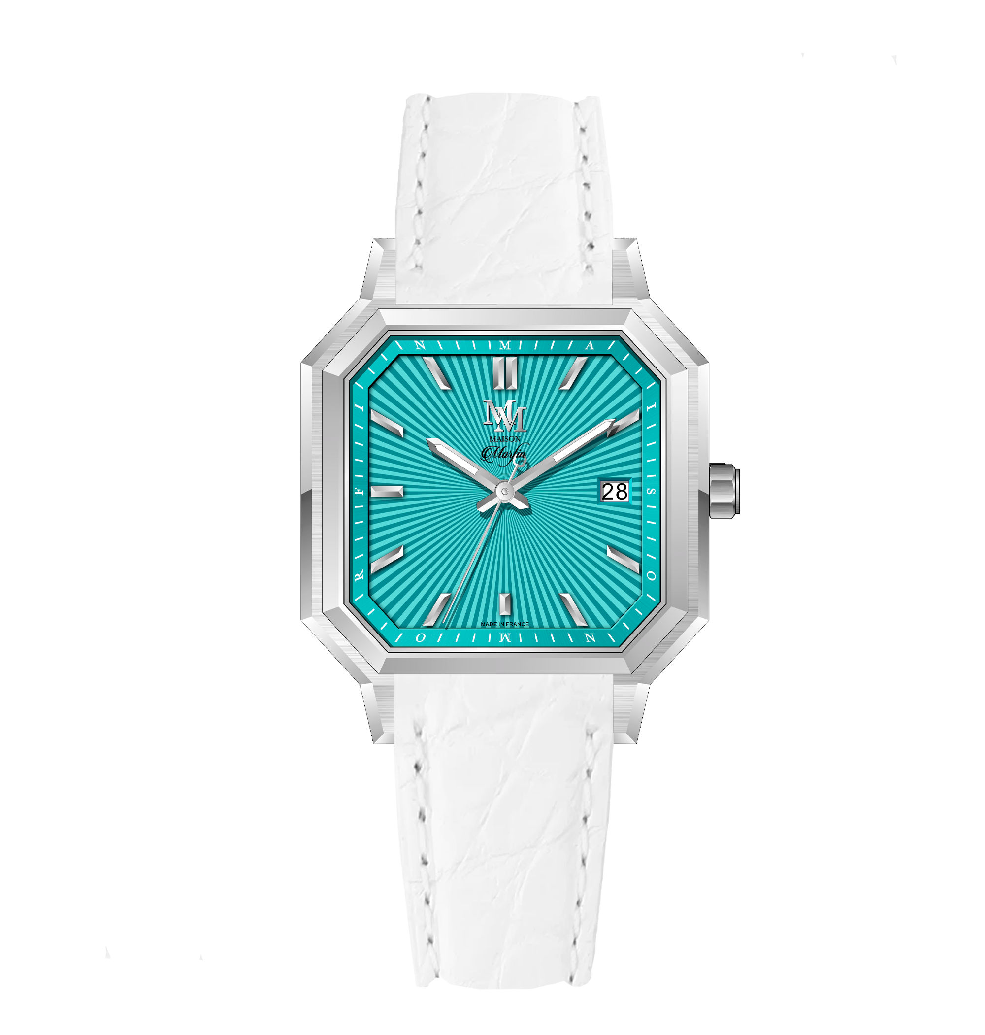 MM25-08 AUTOMATIQUE - BLEU TURQUOISE CUIR BLANC CROCODILE