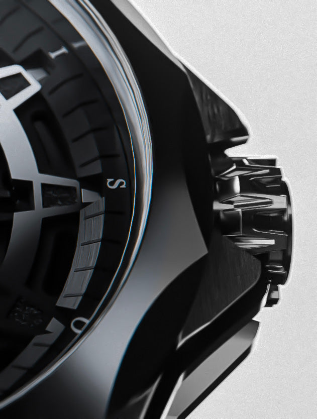 Le modèle Triomphe puise son inspiration directement de l’Arc de Triomphe parisien. Son cadran réinterprète les 12 avenues adjacentes qui convergent vers le monument, traduites ici par 12 pointes en polycristallin évoquant la géométrie aérienne des bâtiments bordant les rues.