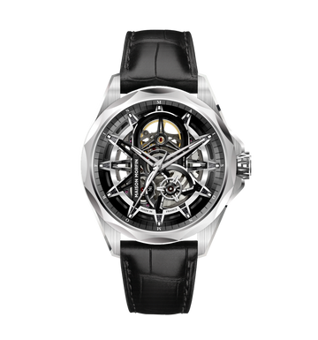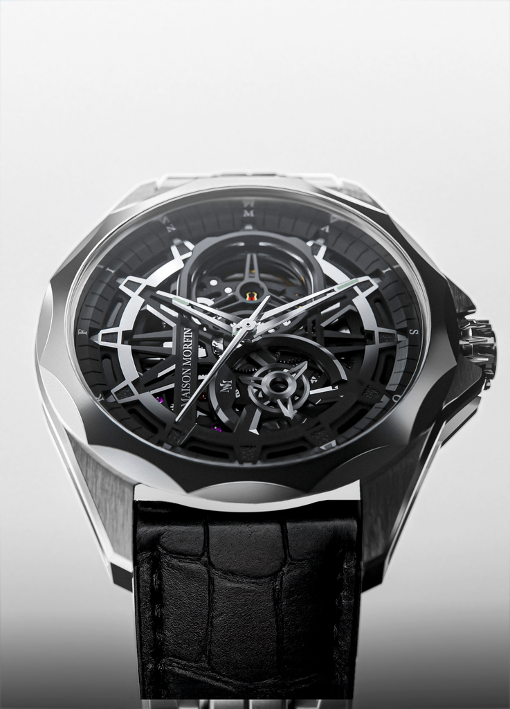 Découvrez "Triomphe", notre nouvelle montre squelette, hommage à l’Arc de Triomphe. Entièrement pensée et assemblée en France, elle incarne la rigueur architecturale et l’élégance parisienne. Son mouvement apparent révèle une construction en étages inspirée des volumes monumentaux du célèbre monument. Un équilibre parfait entre art, technique et symbole.