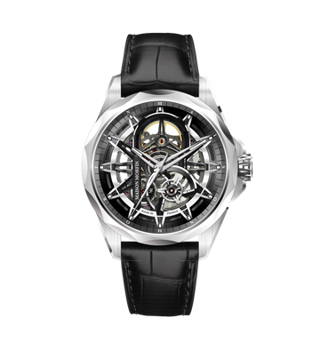 Découvrez "Triomphe", notre nouvelle montre squelette, hommage à l’Arc de Triomphe. Entièrement pensée et assemblée en France, elle incarne la rigueur architecturale et l’élégance parisienne. Son mouvement apparent révèle une construction en étages inspirée des volumes monumentaux du célèbre monument. Un équilibre parfait entre art, technique et symbole.