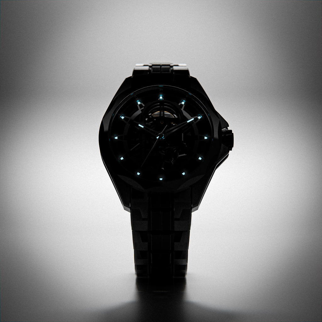 Nous avons opté pour le Super-Luminova® BGW9, très luminescent et haut de gamme, pour les indexes et aiguilles de notre modèle. Ce choix assure une lisibilité optimale même dans les conditions de faible luminosité, rehaussant ainsi l'élégance et la fonctionnalité de la montre.