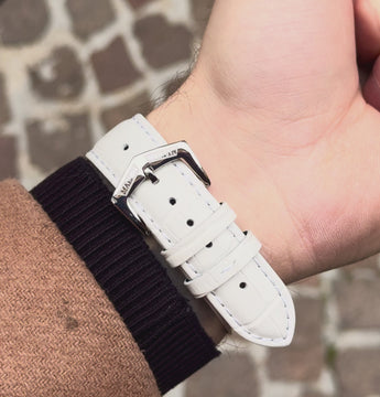 Bracelet en cuir de crocodile made in Italy fait main blanc, tannage végétal hypoallergénique