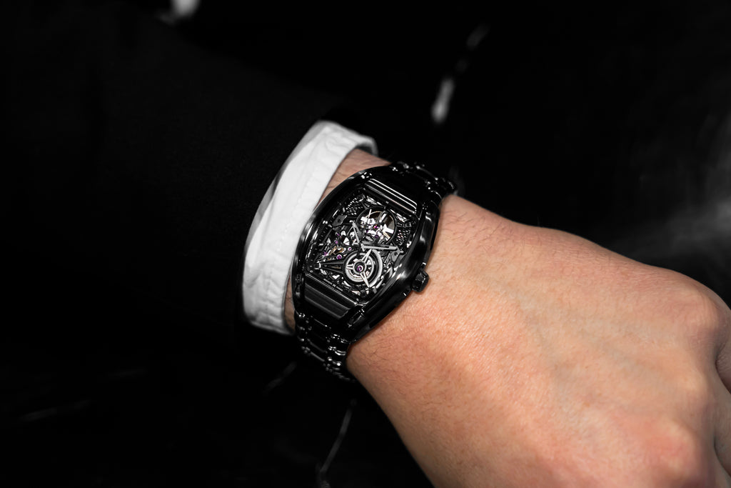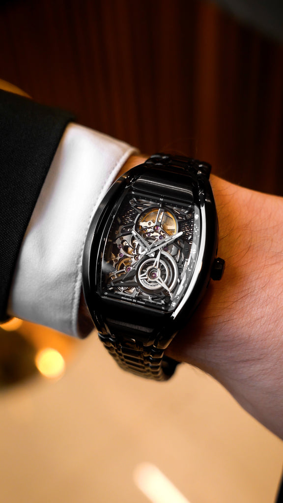 Discover our new product, the "MM24-05" skeleton tonneau watch, made in France. Equipped with the Swiss STP6-21 movement, it combines design complexity and cutting-edge engineering. Each piece reveals a meticulously studied superposition of levels to highlight the key organs of the caliber. Pushed to its limits, this unique design embodies watchmaking excellence. Limited edition of only 80 pieces worldwide, this watch is a true masterpiece for collectors. Delivery around December 2024 (possibility of delivery in early 2025).