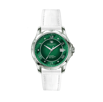 MM24-06 ARGENTÉ - VERT EMERAUDE - CUIR VEAU BLANC